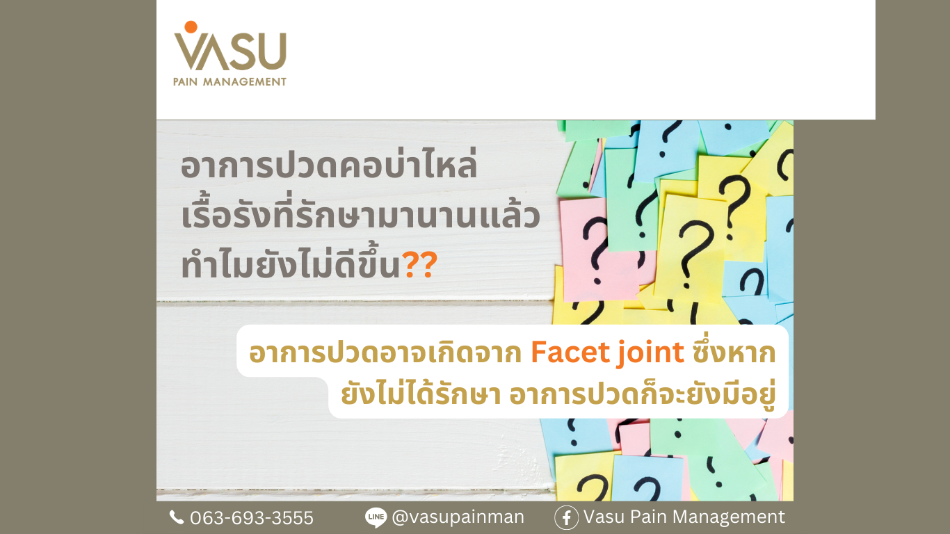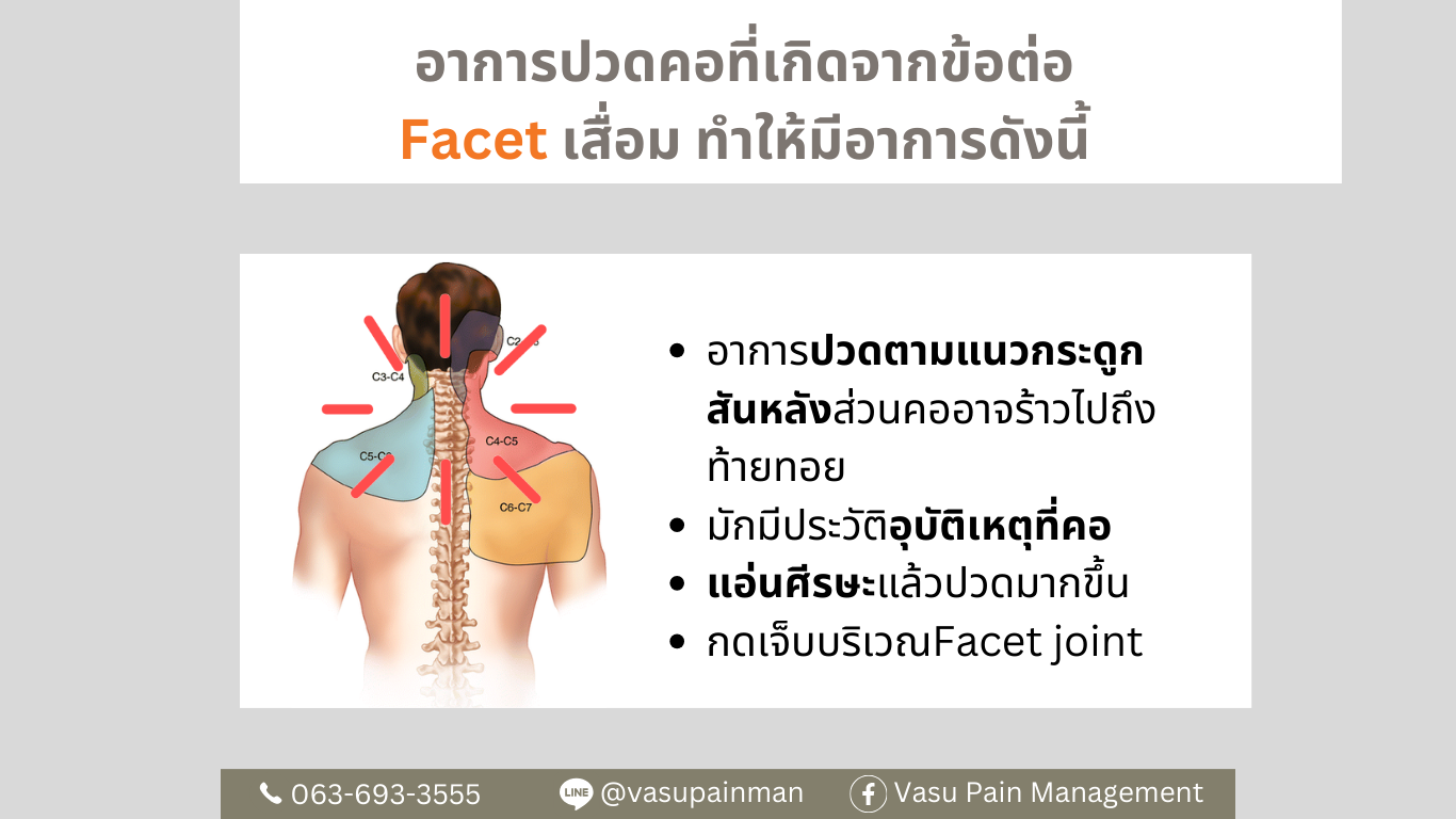 อาการปวดคอบ่าเรื้อรัง อาจมีสาเหตุจาก Facet joint ได้ ซึ่งหากยังไม่ได้รับการรักษา อาการปวดก็จะยังอยู่