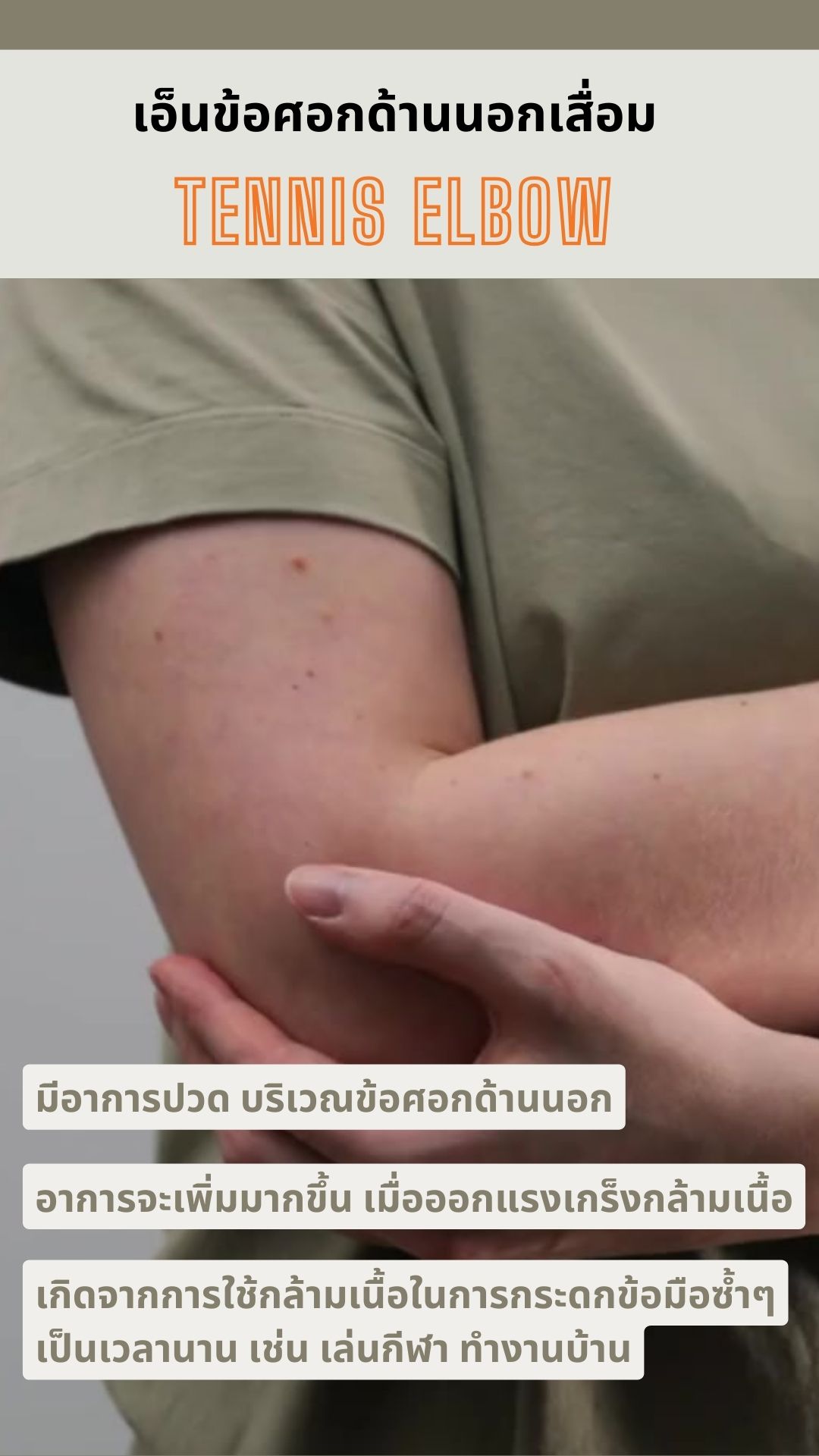 - ปวดบริเวณข้อศอกด้านนอก