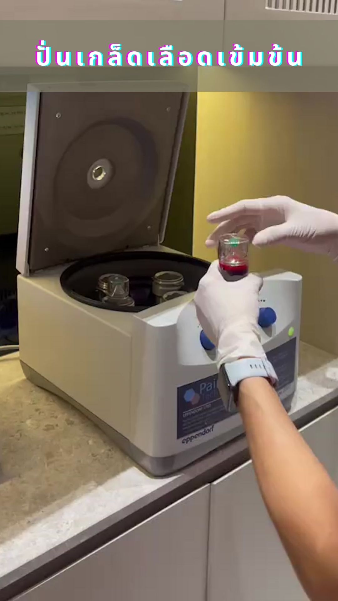 หลังจากทำการเจาะเลือดผู้ป่วยแล้วก็จะนำเลือดเข้าเครื่องปั่นเพื่อทำให้เกล็ดเลือดแยกตัวออกมา