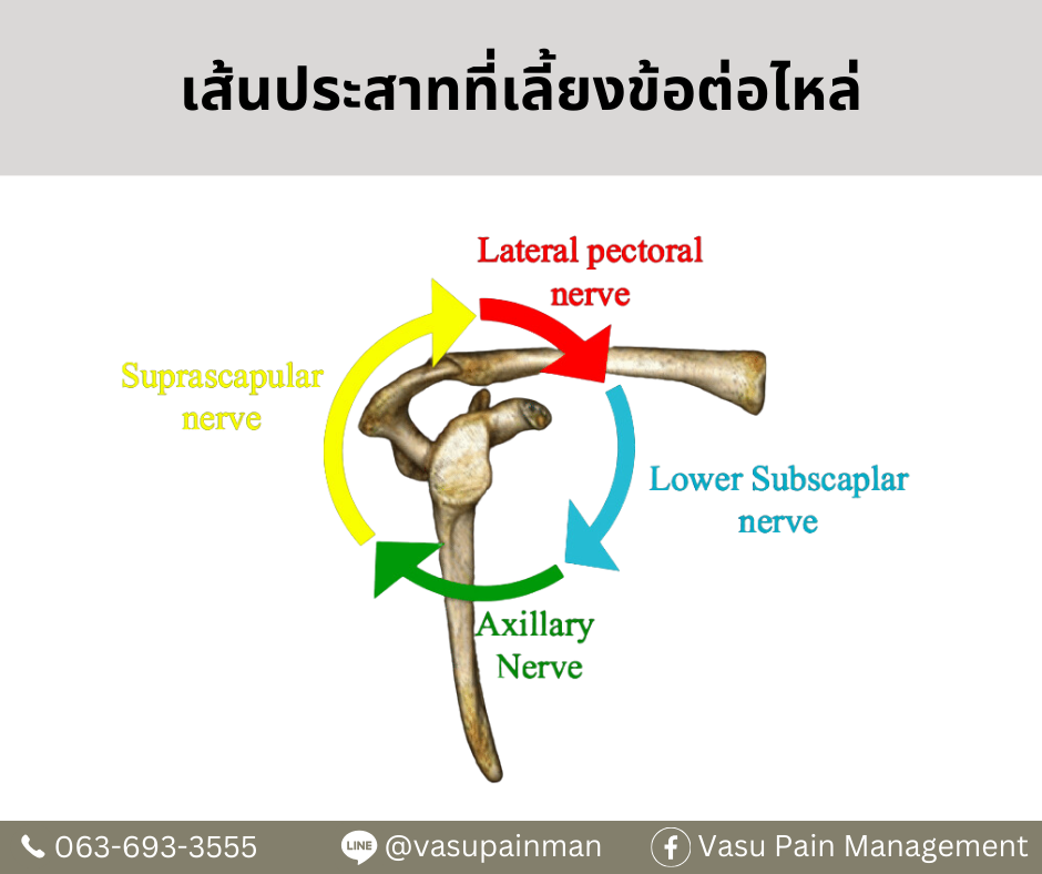 เส้นประสาทที่ไปเลี้ยงบริเวณไหล่ จะมีด้วยกัน 4 เส้น ดังภาพ